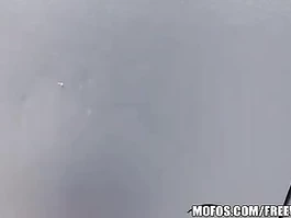 Attractive brunette with adorable face and excitingly slender tight body shape dressed in tight top gets picked up from gas station by handsome fucker and pleases him with exciting hot tight blowjob before being bent over in doggy pose and pleasantly fucked on balcony