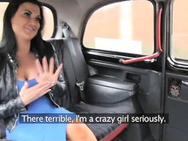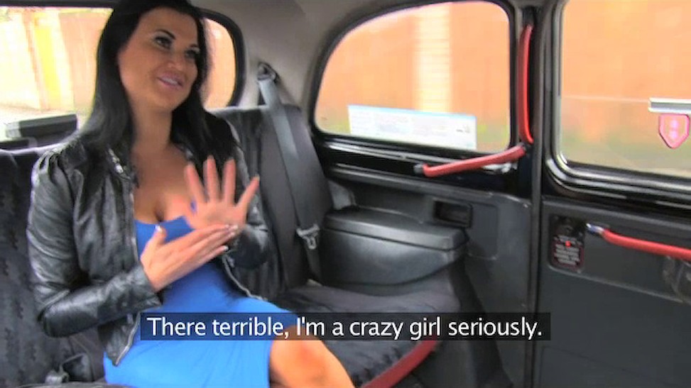 Steaming hot brunette chick with excitingly slender shaped body dressed in sexy hot blue dress got in cab and steamingly excited from awesome cunnilingus on back seat before doing blowjob and licking off driver's balls. Girlie got fucked passionately hard
