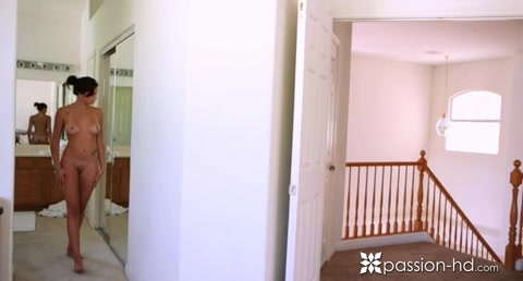 Young redhead chick with tight and juicy shaped body is getting in hot bath and excitingly fondling her small cute boobies and smoothly shaved pussy; she comes out to the bedroom horny and pleases her fucker friend with tight blowjob before getting pleasantly fingered in doggy pose