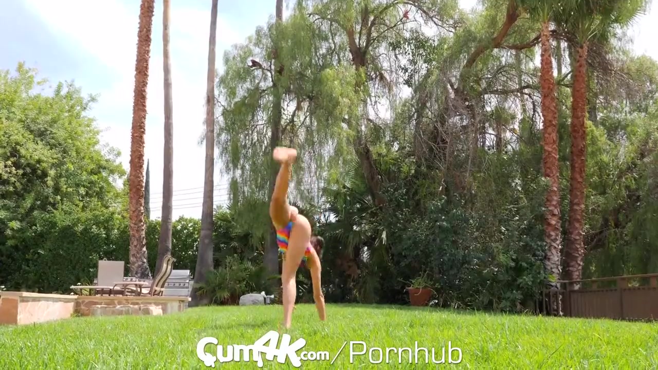 Steaming hot brunette chick with amazingly sexy slender shaped body and petite round bubble butt is deepthroating big white dick outdoors until it erects hard and then enjoys having shaved young pussy fucked unsparingly hard in rather hot sex poses