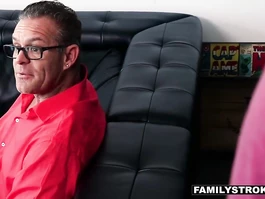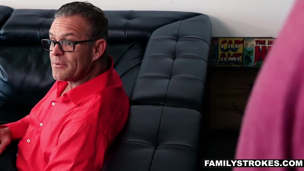 Exciting slender sexy shaped blonde milf chick caught her stepson with her vibrator sex toy and pleased him with deepthroat blowjob on the bed before bending over and having tight bubble butt excitingly stroked and pleasuring hardcore doggystyle fuck