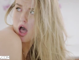 Steaming sexy blonde babe with wonderful round bubble butt and beautiful big boobs dressed in hot black stockings is squatting in front of her boyfriend and doing deepthroat blowjob to him before being fucked unsparingly hard and rough in rather hot sex poses