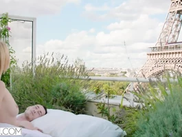 Slender skinny shaped young blonde chick with tiny tits and tight big round buttocks is standing on her fourths and doing deepthroat blowjob to boyfriend until big dick gets hard and then enjoys awesome cunnilingus in doggy pose and pleasures hardcore fuck