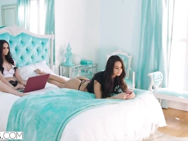 Steaming hot young brunette girlfriends are hotly posing in front of their fucker friend dressed in steaming hot black underwear and showing off their beautiful buttocks and sexy small boobies and then sucking fucker's dick and licking his asshole