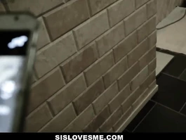 Exciting sexy shaped young mulatto chick is lying on the bed with wide spread legs and having her shaved pussy pleasantly stroked with dildo sex toy by her stepbrother and then doing tight deepthroat blowjob to him and getting fucked hard with BBC