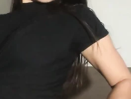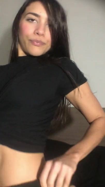 Burning hot and excitingly slender shaped young brunette girl is lying on the couch in front of the webcam wearing hot black top and sexy cute string panties with wide spread legs and enjoying pulling underwear and showing off shaved cameltoe cunt before masturbating