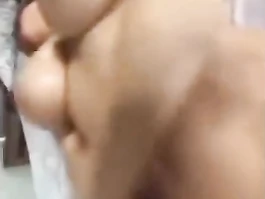 Skinny teen girl with amazingly slender shaped body is lying on the bed nude with wide spread legs and tightly squeezing her breast and excitingly stroking tiny clit and having her young shaved pussy roughly fucked with hard big dick and being filmed in POV sex video