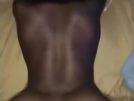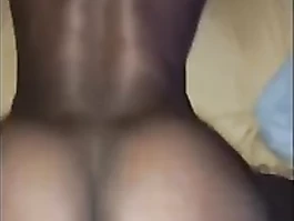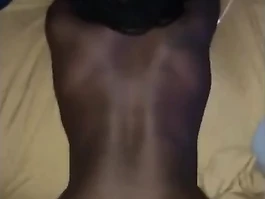 Exciting slender sexy shaped young black chick with hot tight back and awesome round bubble butt is undressing and bending over in doggy pose on the bed and having her shaved ebony pussy fucked roughly hard from behind and being recorded in POV sex video