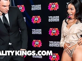 Hottest black Insta thot, Jenna Foxx, winds up getting fucked by a random white dude she met on the red carpet. Her hairy pussy gets wetter and wetter.