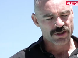 Stunning sexy girlfriends are seducing one bald dude by the pool and undressing him before hotly exciting and tightly erecting his big dick with deepthroat blowjob and balls licking actions and then enjoying pleasant cunnilingus and passionate hardcore threesome fuck outdoors