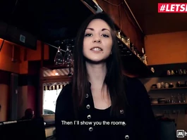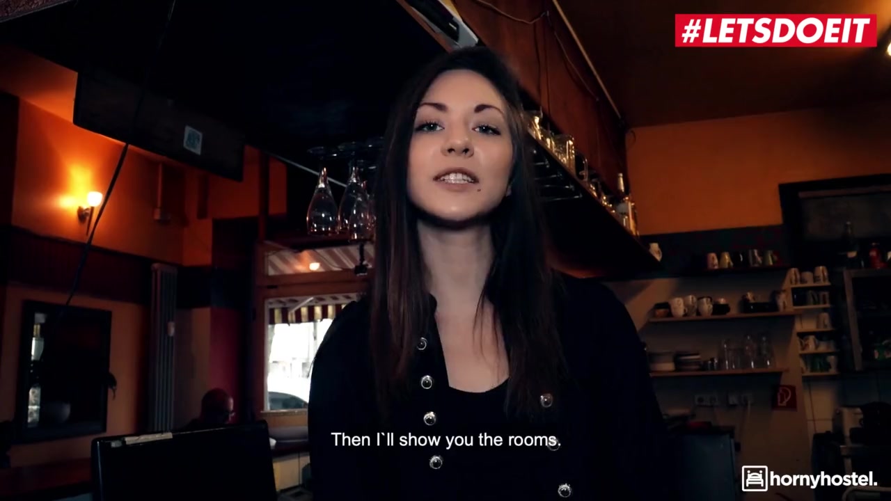 Alluring sexy shaped young brown haired girl is undressing and coveting to sleeping dude in hostel and excitingly fondling him before doing tight deepthroat blowjob and then having shaved pussy licked off and enjoying hardcore fuck in front of security camera