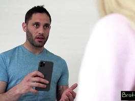 Alluring sexy shaped young blonde girl is excitingly posing to the webcam and her horny stepbrother in hot red stockings and short fluffy skirt and showing tight young boobs and pink nipples and then getting roughly pounded in young cunt with big cock