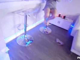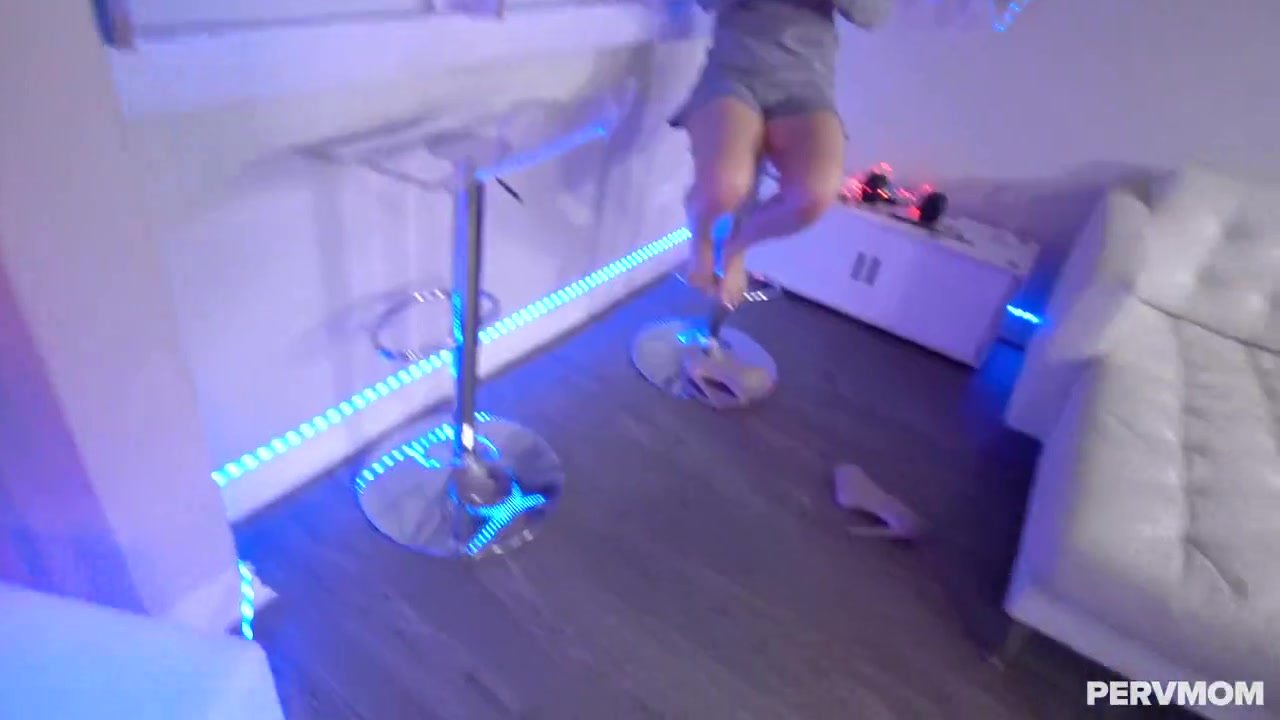 Slender shaped blonde milf is sitting in front of her young stepson on the floor and doing tight deepthroat blowjob to him and tightly erecting his big dick and then having tender feet stroked and bending over in doggy pose and having tight shaved cunt drilled hard