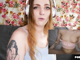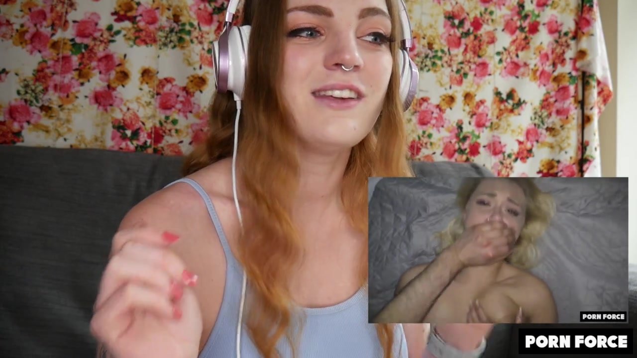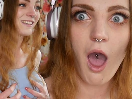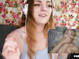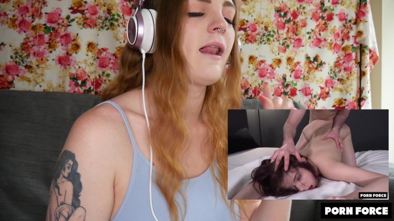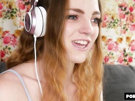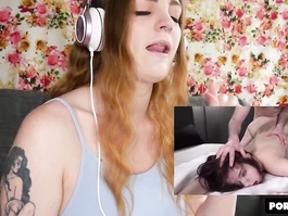 Slender shaped young girl with head phones is hotly exciting from watching online sex videos and stroking pussy on young blonde babe standing bent over on the desk and being pounded amazingly hard in wet cunt from behind