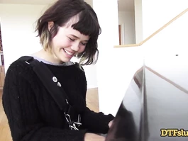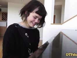 Steaming hot teen chick with sexy small boobies is hotly undressing in front of mature dude and pleasing him with tight deepthroat blowjob until big dick erecting hard and then enjoying being roughly fucked in tight young shaved pussy