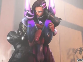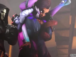 Exciting sexy shaped sex cartoon heroine is having her latex suit pulled off by two fuckers and enjoying exciting cunnilingus before sucking big 3D dicks and then having her cartoon asshole and pussy fucked roughly hard at the same time