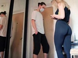 Wonderful young blonde girl is hotly posing and excitingly undressing in front of horny fucker friend and showing off her beautiful big round jelly butt and appetizing sweet breasts and then sitting on her knees and doing great deepthroat blowjob