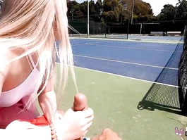 Gorgeous sexy blonde chick is flashing her sweet bubble butt underskirt while playing tennis and then coming home and lying on the bed with wide spread legs and fingering her shaved cunt and then doing deepthroat blowjob to boyfriend and riding hard cock in cowgirl pose