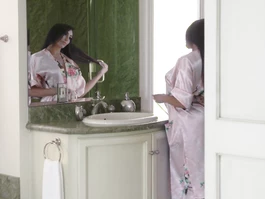 Stunning sexy brunette Lucy Li is being gently fondl...